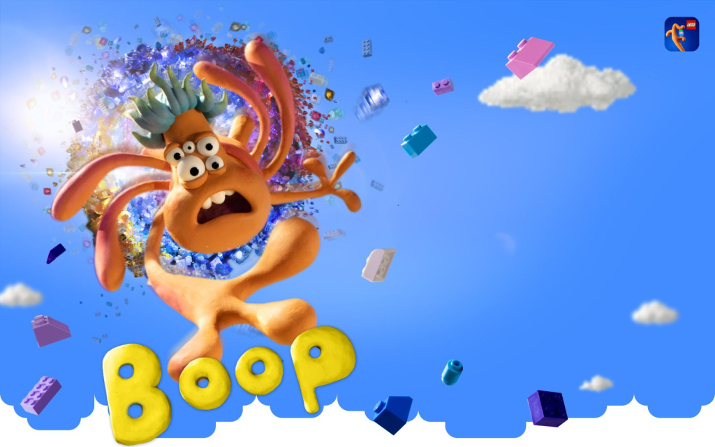 Produced by Aardman Animations in collaboration with The LEGO Group, Boop is a stop-motion production featuring a clay-sculpted alien named Boop traversing a world built from LEGO bricks.